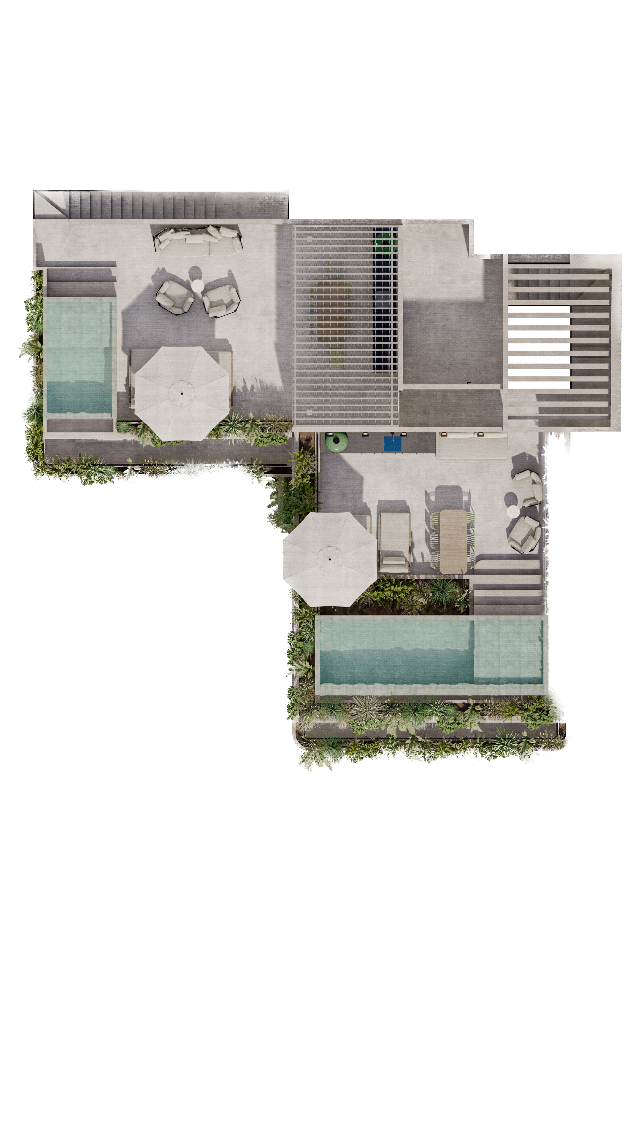 The rooftop is the ultimate gathering spot for the building residents. One of the sections is allocated to the PH302 as a private rooftop while the bigger pool is open to all the residents.
